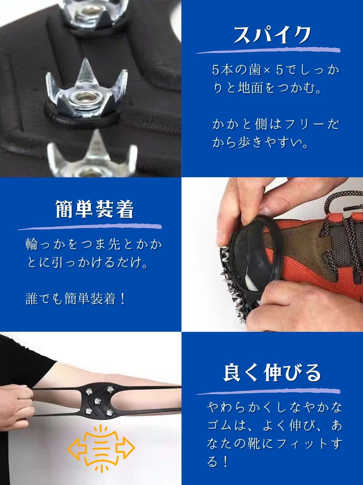 靴 滑り止め 靴底 雪 アイスバーン 対策 アイゼン|チェーンスパイク 携帯型|登山・アウトドア・雪道必須アイテム