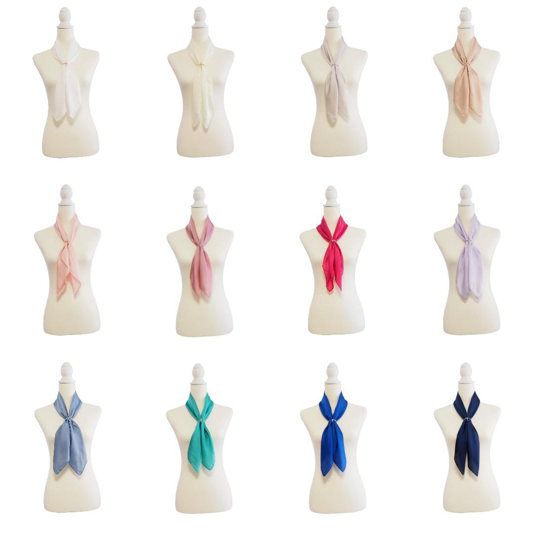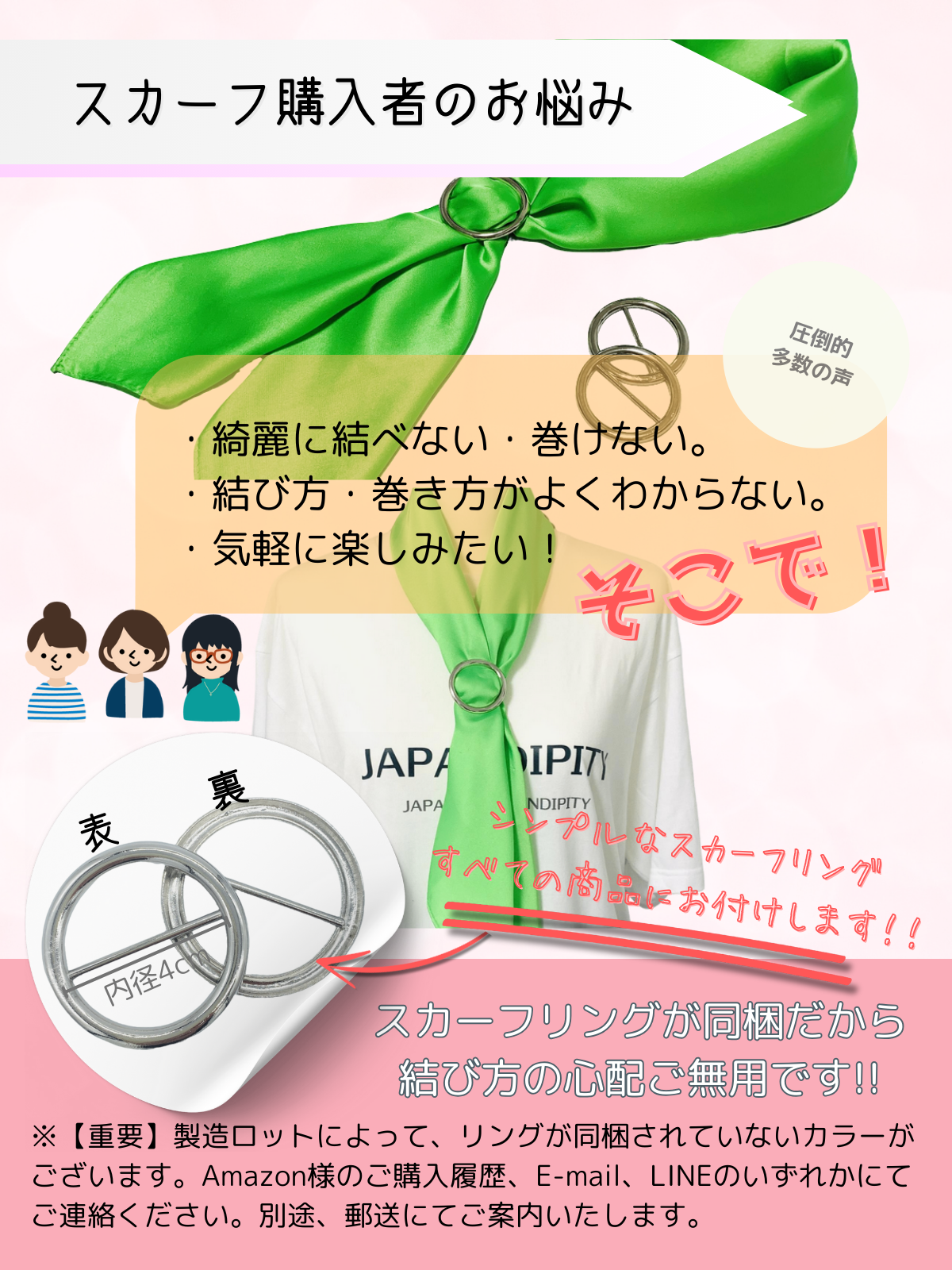 レディース スカーフ 70cm 無地 全23色 シルクタッチ ポリエステル – さらり【 スカーフリング セット】