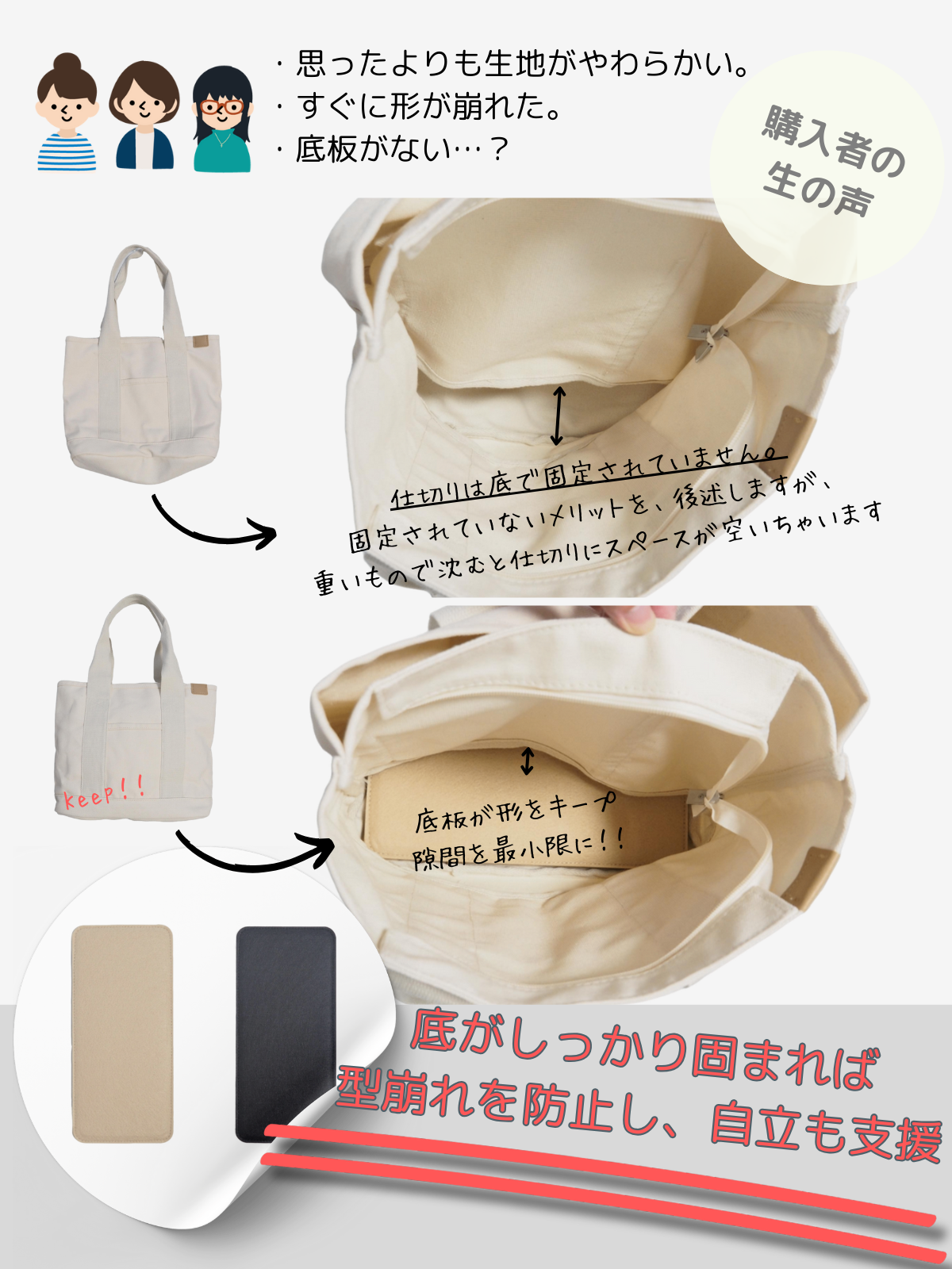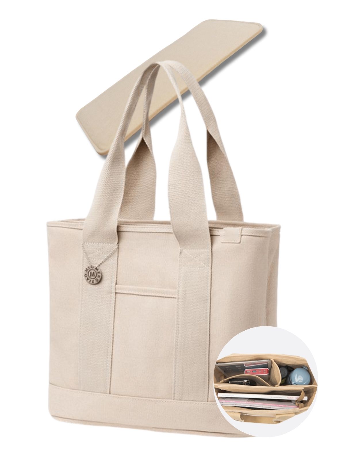 A4 トートバッグ レディース, キャンバス 帆布 縦型 大容量 仕切り ファスナー付き マザーズバッグ 通勤バッグ 通学バッグ 【底板セット】