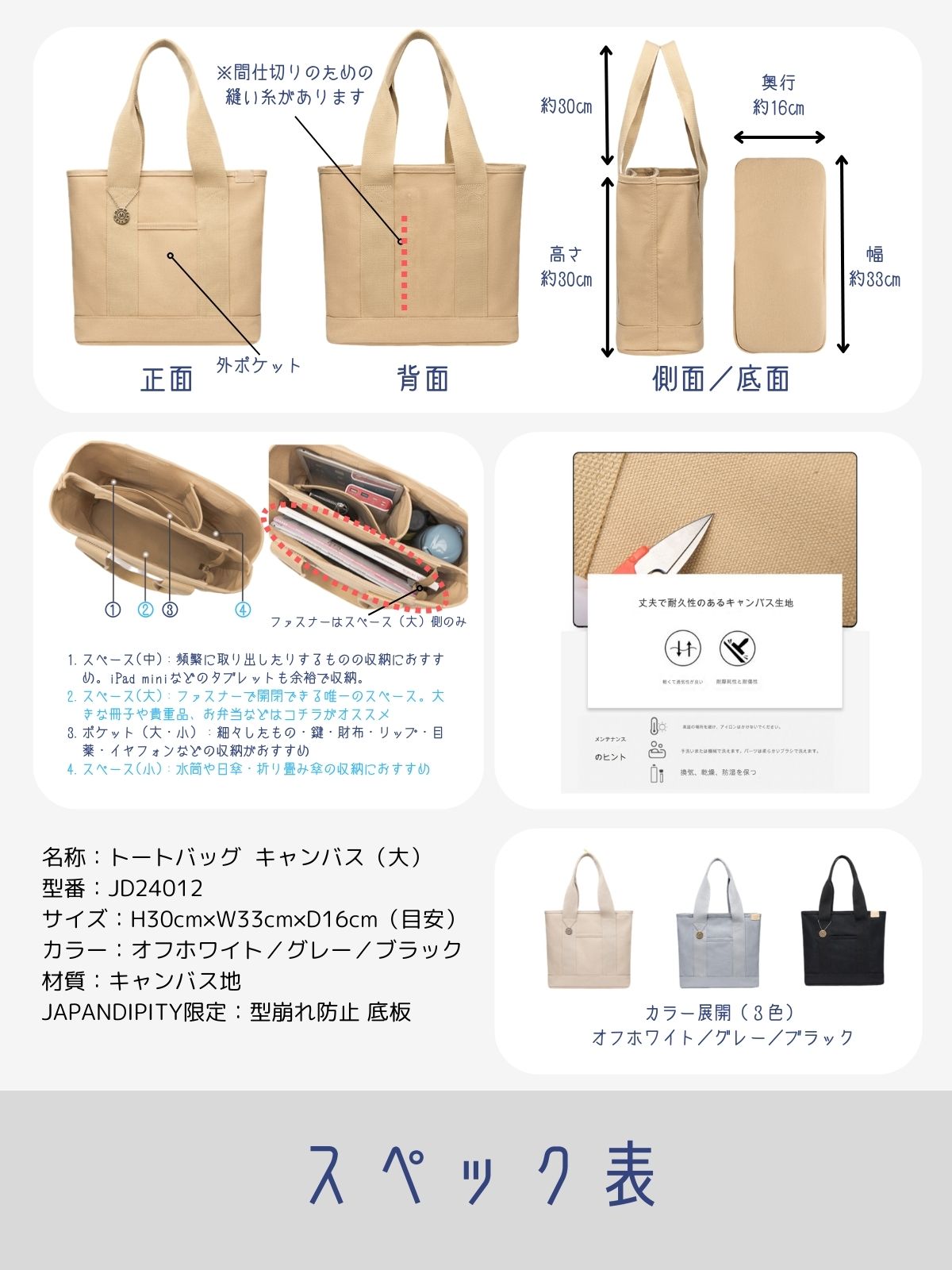 - 丈夫な素材: 丈夫なキャンバス生地で作られているため、長期間の使用に耐えられます。