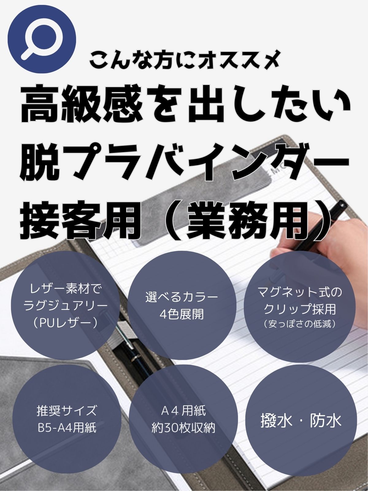 そこで注目されるのが、PUレザー製の2つ折りファイルバインダー。