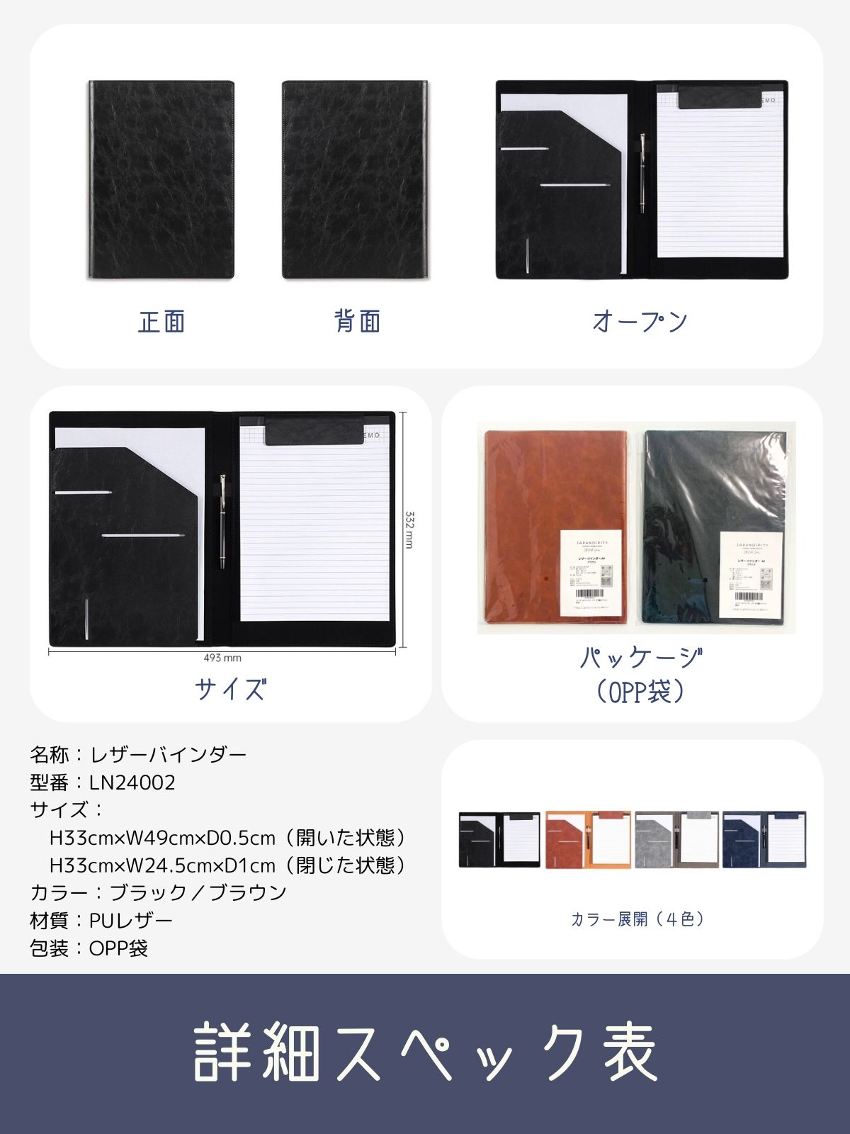 - サイズ:A4サイズ W245mm×H330mm×D10mm(閉じた状態)