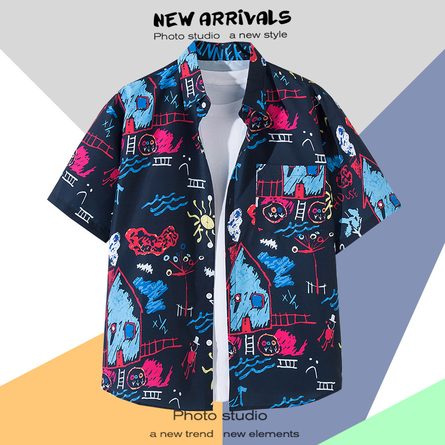 柄シャツ|アロハシャツ|クレヨンアート柄|1122-BK
