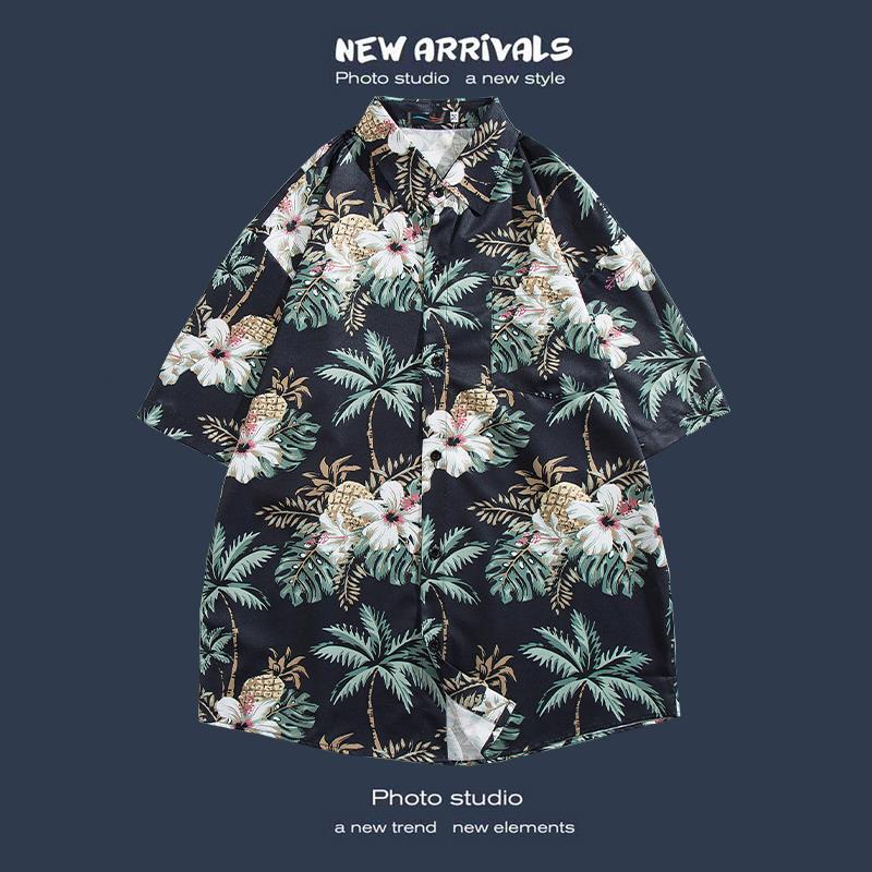柄シャツ|アロハシャツ|トロピカル柄|1191-BK