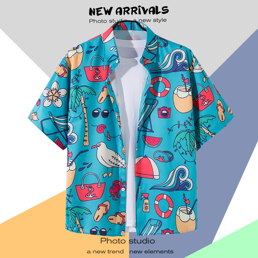 柄シャツ|アロハシャツ|ビーチイラスト柄|2115-BL