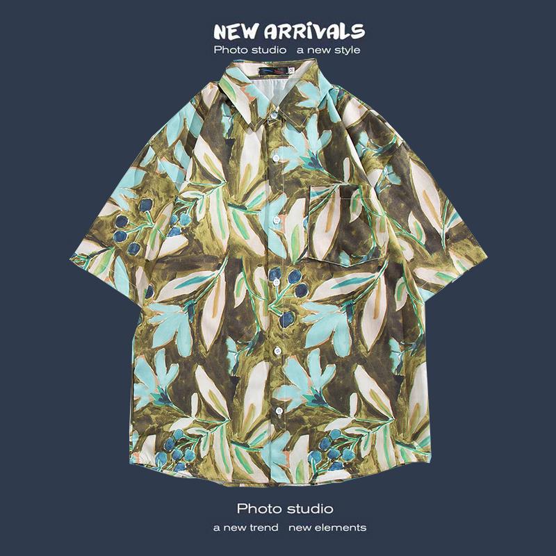 柄シャツ|アロハシャツ|リーフ柄(黄緑)|1187-YW